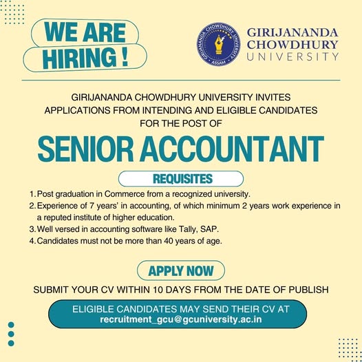 Girijananda Chowdhury University invites applications from interested and eligible candidates for 1 post of Senior Accountant.