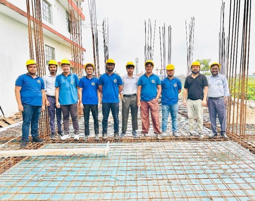 After getting ready, the faculty members led the students around the site and explained the various parts of the structure. The students observed different stages of construction and learned how each component contributes to the building’s overall stability.