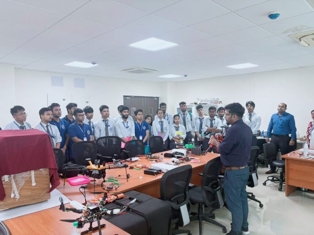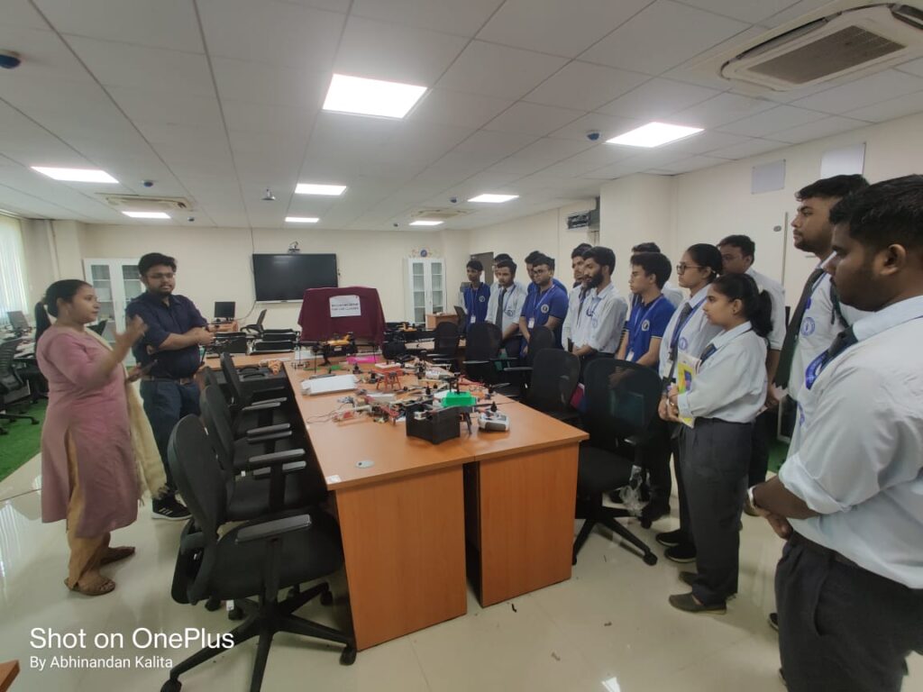 The experts from IIT Guwahati demonstrated various research projects and startups incubated under the hub, highlighting applications in Drone technologies, ROV systems, 3D printing technologies, Robotics, AI, IoT systems, and PCB fabrication. Students interacted with researchers and faculty members, gaining insights into advanced research methodologies, industrial collaborations, and the innovation ecosystem that bridges academia and industry. The visit helped students understand the relevance of interdisciplinary learning and its role in solving real-world engineering problems. Overall, the industrial visit was highly informative and motivating. It enhanced students’ awareness of cutting-edge technological developments and encouraged them to pursue innovative research and entrepreneurship in their future careers. The industrial visit was coordinated by Mr Abhinandan Kalita, Assistant Professor, Department of ECE, GCU Assam.