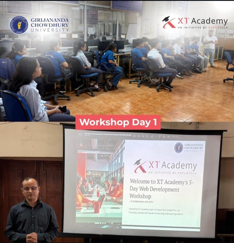 The 5-Day Workshop on Web Development was organized by XT Academy, a unit of Xopuntech India Pvt. Ltd., in collaboration with the Department of Computer Science & Engineering (CSE), Girijananda Chowdhury University (GCU). The workshop aimed to provide participating students with foundational and intermediate-level knowledge of web development technologies and industry trends.
