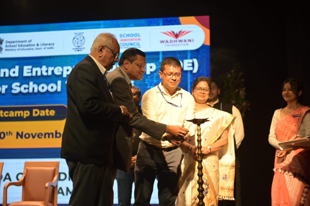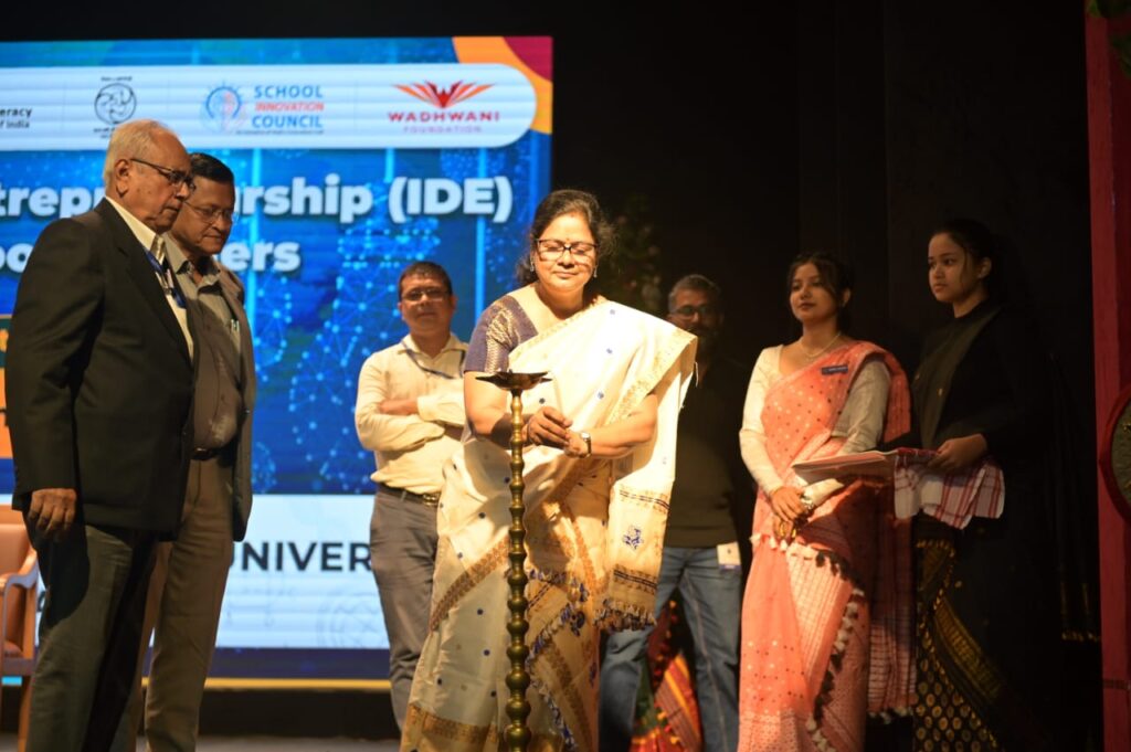 The inaugural session began with a traditional lamp-lighting ceremony, followed by a series of engaging and insightful presentations. Mr. Sreevatsan, the Master Trainer from Wadhwani Foundation, conducted interactive sessions on the topics “Spark Quest: Introduction to Innovation and Design Thinking Principles,” “Find Your Flow: Discovering Your Inner Entrepreneurial Skills,” and “Innovation: A Path to Problem and Opportunity Identification.” Ms. Anusuya Mahanta from IIM Calcutta Innovation Park also contributed to the event with her talk on “Inspire to Start: Mentoring the Next Generation of Young Innovators,” where she shared valuable insights on nurturing the entrepreneurial mindset in young innovators.