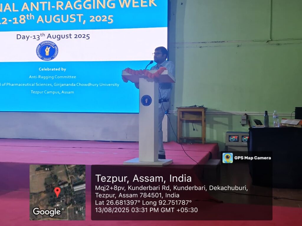 The Anti-Ragging Committee of Girijananda Chowdhury University, Tezpur Campus observed the National Anti-Ragging Week from 13th to 18th August 2025 through a series of engaging and awareness-driven events. The initiative aimed to sensitize students about the consequences of ragging while promoting a safe, respectful, and inclusive campus environment.