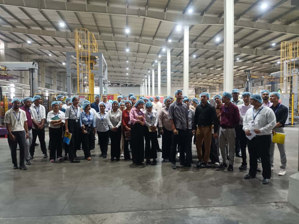 Upon arrival, the students were warmly welcomed by Mr. Bhargab Lahkar, Executive MIS of the company, who guided them throughout the factory premises. He offered a detailed explanation of various aspects of the production process, including the preparation of mixtures and syrups, the plant layout, the functioning of the assembly line and the methods adopted for waste management. Mr. Lahkar also addressed numerous queries from the students, enriching their understanding of day-to-day plant operations.