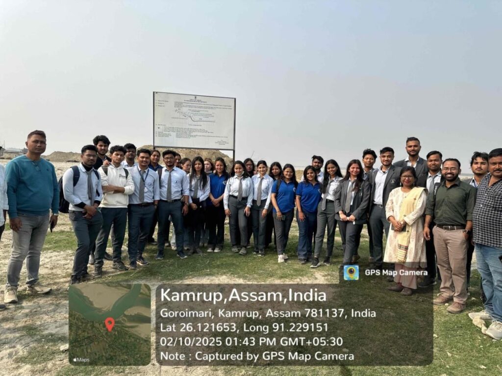 On 10th February 2025, the Department of Civil Engineering conducted an industrial field visit for the final-year B.Tech students to a riverbank protection site at Chaygaon under the Water Resources Department and Brahmaputra Infrastructure Limited. The visit aimed to study the erosion control techniques implemented in the area.