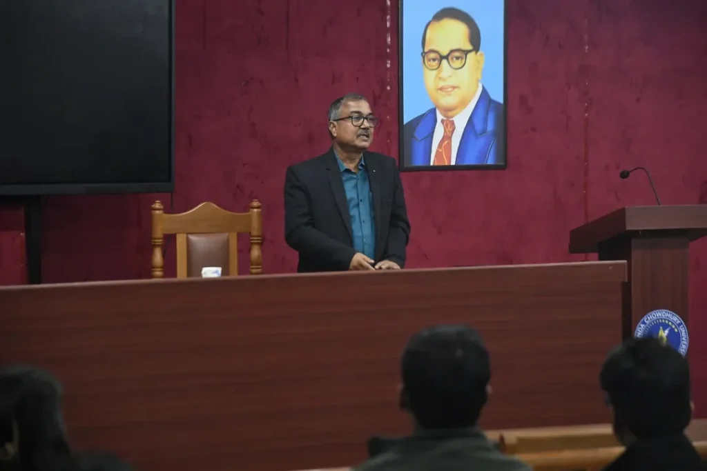 An interactive session was organised by the Department of English and Foreign Languages on the 5th of February, 2026. The interaction was held between Honourable Vice Chancellor of Girijananda Chowdhury University, Professor Kandarpa Das and the students of the Department. A holistic account of the experience of students in the Department and the University was taken. Words of encouragement and motivation by Honourable VC Sir in exchange, inspired the students for undertaking broader pursuits in their academic career. The occasion was also graced by respected Dean of Academics, Professor Siddharth Shankar and the faculty members of the Department.