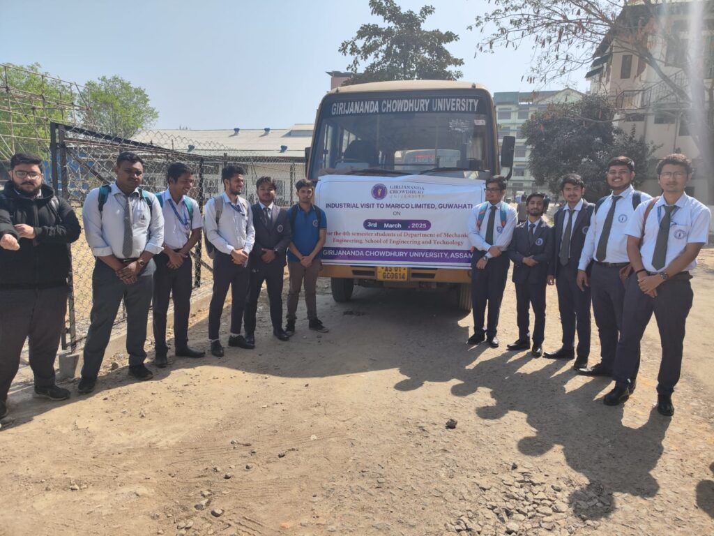 On 3rd March, 2025, the B.Tech 4th semester students of Department of Mechanical Engineering, Girijananda Chowdhury University, Guwahati along with Mr. Swapnaneel Sarma, (Assistant Professor, Mechanical Engineering Department) and Mr. Nilam Bharadwaj (Laboratory Instructor, Mechanical Engineering Department) visited Marico Limited production facility in Brahmaputra Industrial Park, North Guwahati, Assam.