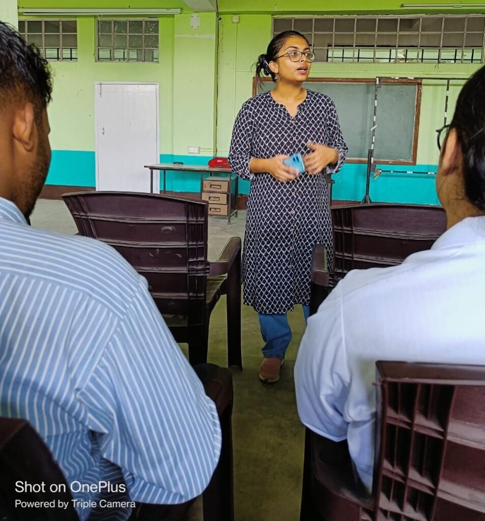 Ms. Neenu Thomas, a dedicated professional from the Department of Clinical Psychology at LGB Regional Institute of Mental Health, embarked on an enlightening journey of interaction with students at the School of Pharmaceutical Sciences, GCU, Tezpur on August 31, 2023. This interaction’s main goal was to investigate the area of subjective healing from non-suicidal self-injury (NSSI) suffered by young people in Tezpur.