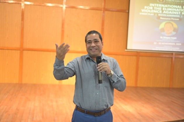 In observance of the International Week for the Elimination of Violence against Women, the Internal Complaints Committee (ICC) and the Gender Sensitization Cell (GSC) at GCU organized a three-day program from 22nd November to 25th November, 2024. The events were thoughtfully designed to raise awareness about violence against women and to inspire collective action for change. The program began with an engaging expert talk by Executive Director, Foundation for Social Transformation, Mr. Ritupon Gogoi on 22nd November. Mr. Gogoi, a dedicated advocate for gender equity, shared valuable insights into the societal challenges faced by women and the importance of individual and collective responsibility in combating gender-based violence. The session was followed by a captivating street play, performed in the university premises, which brought to life the real and emotional struggles of women affected by violence, leaving the audience both moved and inspired.