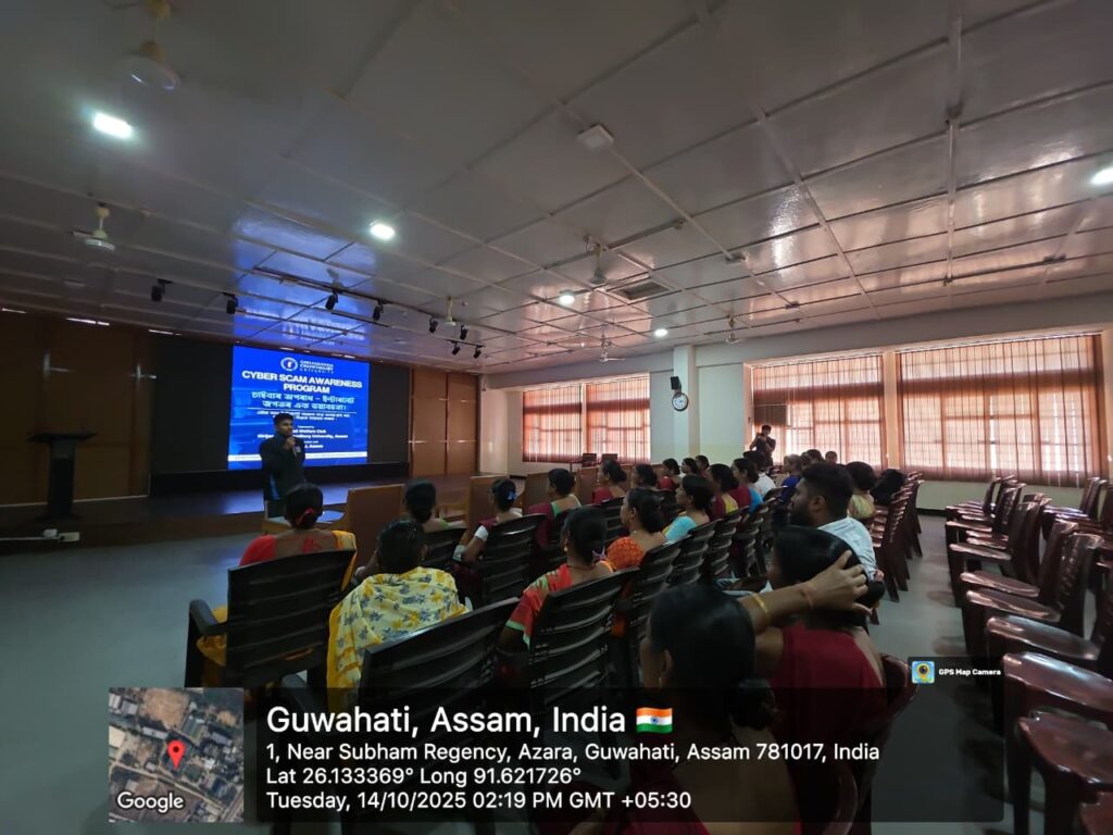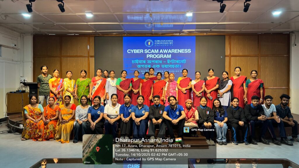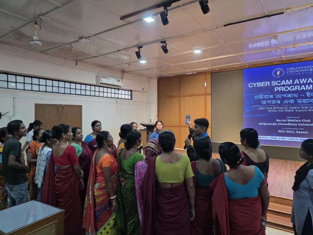 The Social Welfare Club, in collaboration with the National Cadet Corps (NCC) unit of Girijananda Chowdhury University (GCU), organized an informative Cyber Scam Awareness Program for the university’s housekeeping staff at the GCU campus, Guwahati, Assam on 14th October 2025. The initiative aimed to educate support staff about the rising cases of online frauds and safe digital practices.