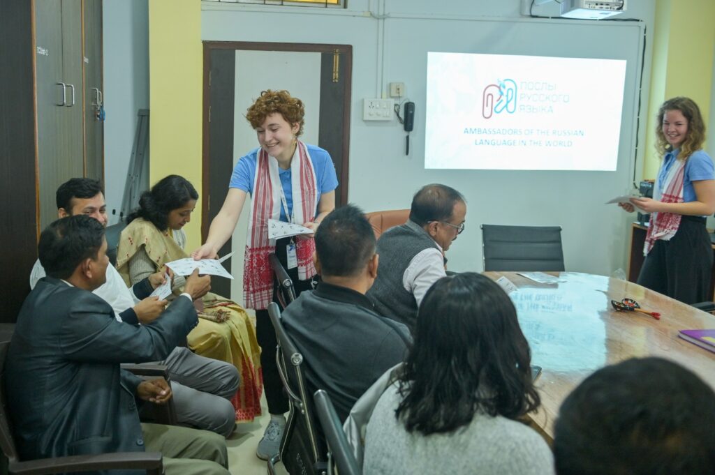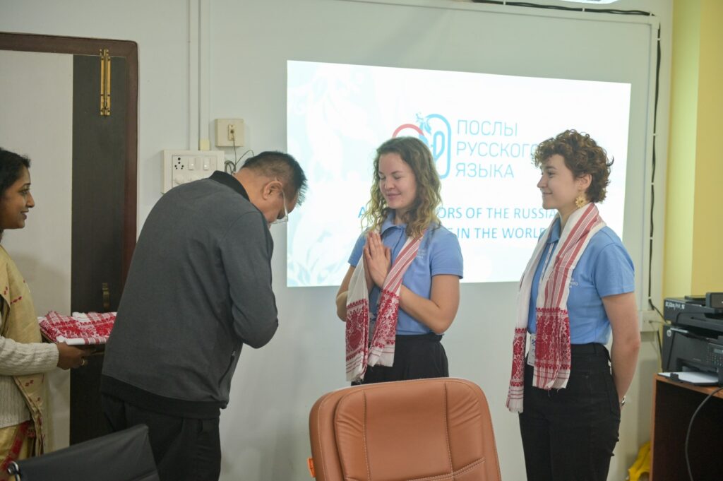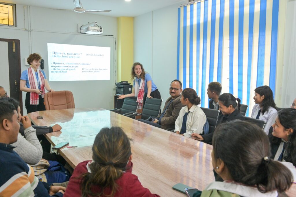 An interactive session was organized on 10th Dec, 2024 at Sonapur College, Sonapur. Ms. Anna Listova and Ms. Polina Dorozhkina acquainted the basic Russian phrases with proper articulation to the participants of the session.