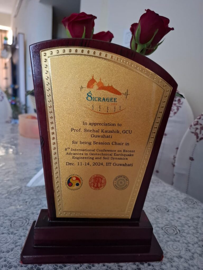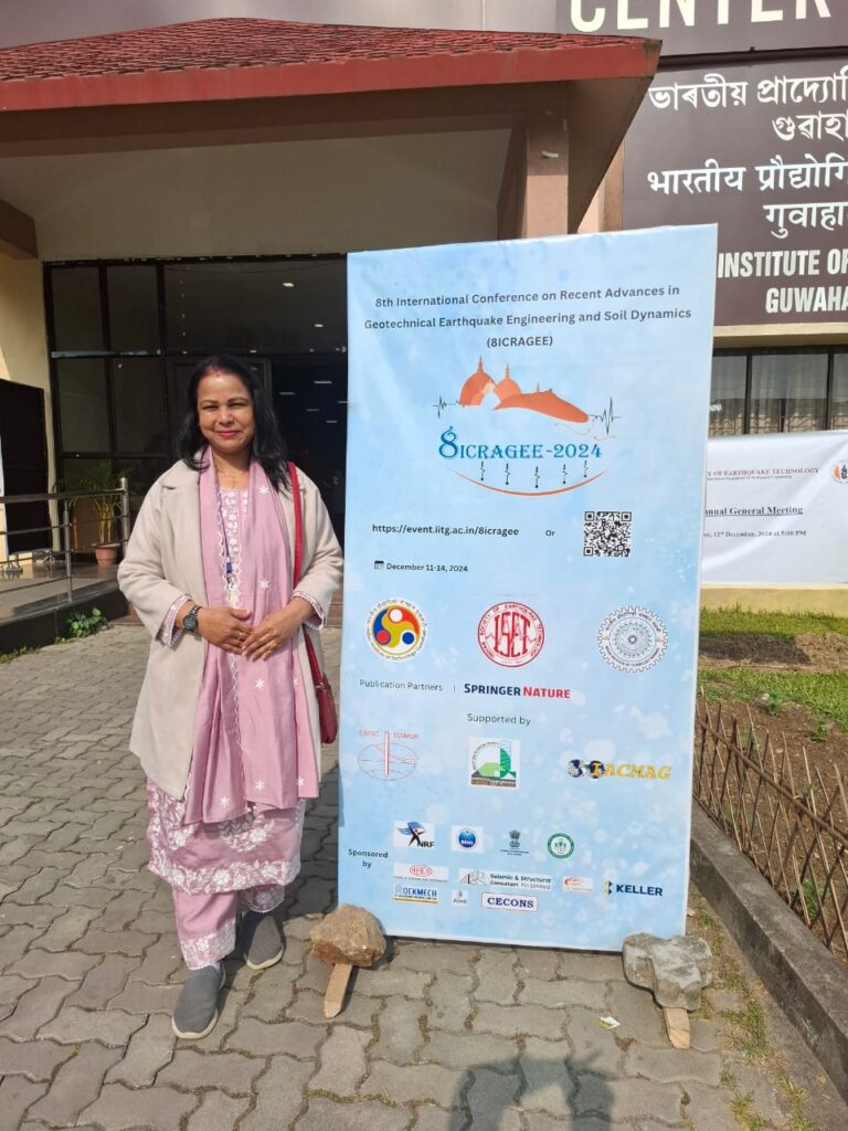 Dr. Snehal Kaushik, Associate Professor in the Department of Civil Engineering at Girijananda Chowdhury University, presented a research paper titled “Seismic Resilience of Reinforced Concrete Frames: Evaluating the Impact of Bracing Systems and Soil-Structure Interaction” at the “8th International Conference on Recent Advances in Geotechnical Earthquake Engineering and Soil Dynamics”.