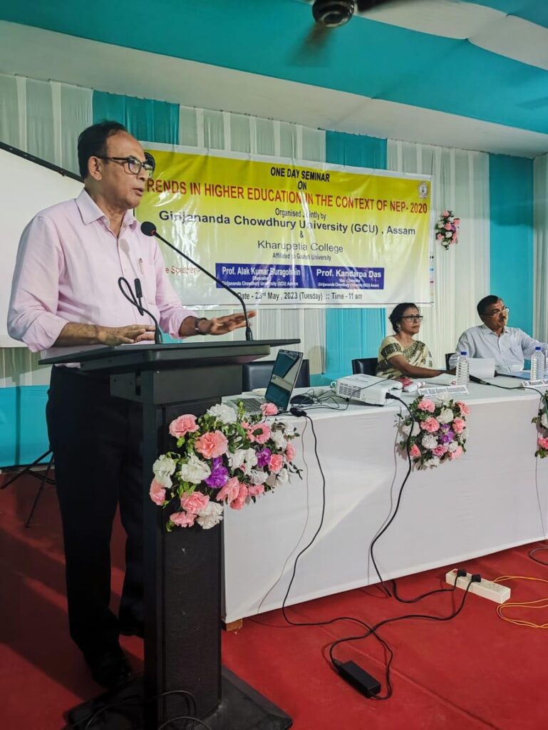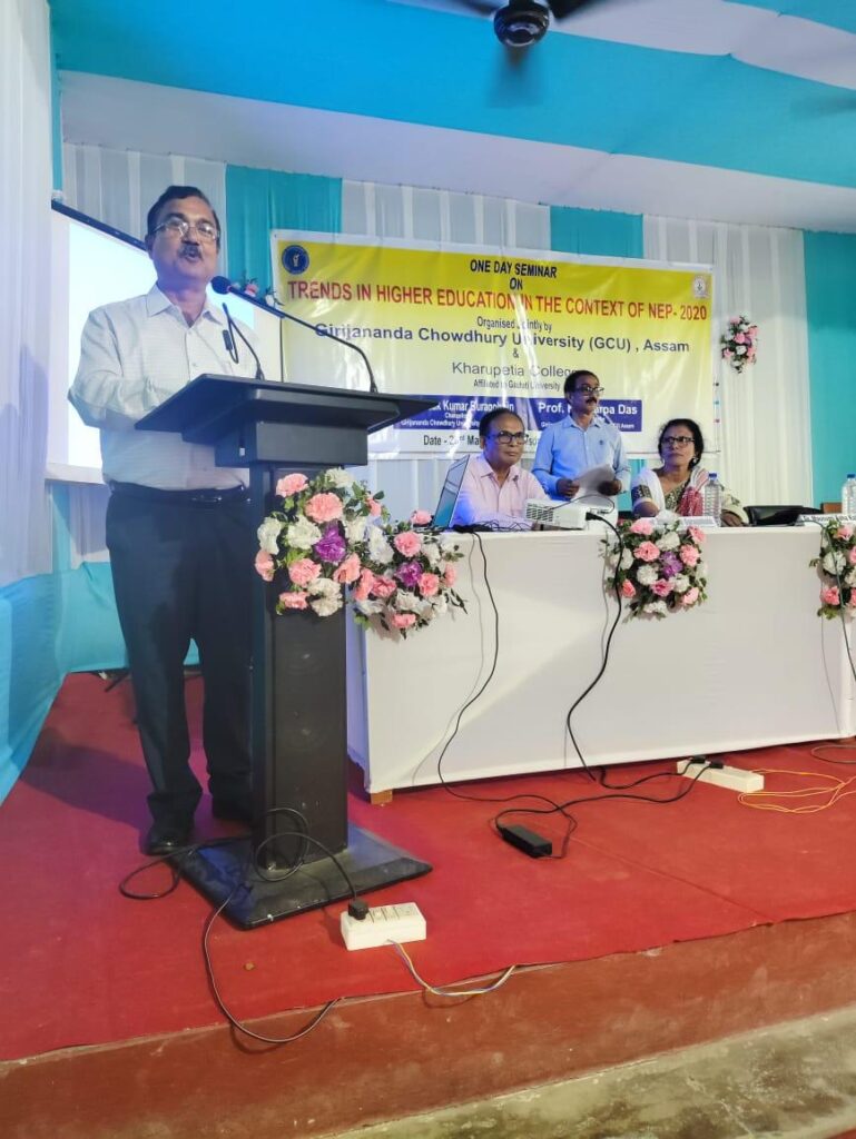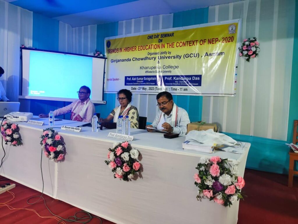 One day Seminar on “Trends in Higher Education in the Context of NEP 2020 in Assam” organized jointly by Kharupetia College and Girijananda Chowdhury University on 23.05.2023.